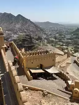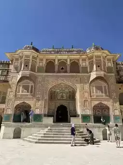 At Agra Fort, stand in the Musamman Burj, the octagonal tower where Emperor Shah Jahan spent his final years, gazing across the river at the Taj Mahal he built for his wife—a truly powerful view 💔. At Amer Fort, step inside the dazzling Sheesh Mahal (Hall of Mirrors), a breathtaking chamber where a single flame can illuminate the entire room in a galaxy of tiny, mirrored reflections ✨. For a grand entrance, consider the traditional elephant ride up the main rampart, though jeeps and walking are also great options to reach the magnificent Sun Gate 🐘.