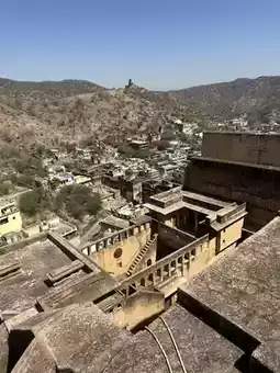 🎨 Near Jaipur, Amer Fort (also known as Amber Palace) offers a different kind of grandeur. Perched majestically on a hilltop overlooking Maota Lake, its formidable exterior gives way to a romantic and artistic interior. You'll discover a stunning blend of Hindu and Mughal styles, with opulent courtyards, elaborate gateways, and chambers adorned with intricate mirror work and delicate frescoes.