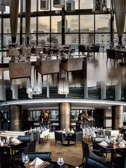 The hotel's restaurant is a foodie's paradise! Start your day with an authentic Arabic breakfast, where spices and ingredients create unique flavors. Indulge in a wide array of international dishes, from French pastries to Asian delicacies, taking your taste buds on a world tour. For dinner, savor the perfectly cooked, juicy steaks, paired with local wines, for a truly delightful experience.