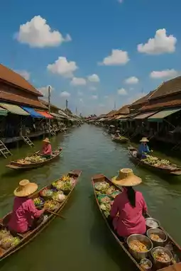 📍 Stroll along the canal, shop for souvenirs, and sample local cuisine. 📸 Capture beautiful photos from both clear daytime and golden evening light. 🛶 Take a boat ride to witness authentic Thai life, accompanied by laughter from friendly vendors.