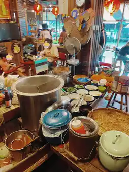 This restaurant is located in Amphawa Floating Market, right on the riverside. 🌊 The atmosphere is amazing.