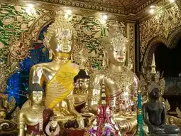 ..Luang Pho Phra Si Ming Muang, the principal Buddha image of the temple, is a stucco Buddha image covered with gold lacquer and plaster. The lap width is 80 inches, in the Chiang Saen Singh 1 style, over 400 years old.