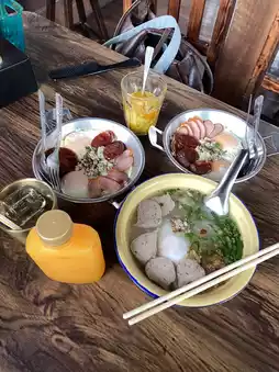 Arun Cafe in Chiang Rai is perfect for early risers, where you can relax and enjoy a relaxing breakfast. The shop is set in an old wooden house, with a warm atmosphere. It looks simple but very inviting. The menu offers both Thai and Western dishes. Choose from hot rice porridge, fried eggs, or American breakfast. Everything is delicious. The price is reasonable, just over 100 baht per person. You'll get your fill and get your money's worth. The atmosphere is also great, perfect for both locals and tourists who want to start the day with a delicious breakfast. #GetDiscountsNotDependingOnLuck