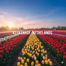 Colorful tulips at Keukenhof reflect in the soft sunlight.