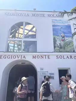 Capri Island is divided into Capri Town and Anacapri Village, and the must-try activity in Anacapri is the **chairlift**. The boarding station is conveniently located in the village center, making it easy to find. Once I purchased my ticket and sat on the wooden chairlift, a small adventure began.