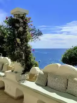 2️⃣ Villa San Michele: Pink and white flower walls + 360° sea view terrace, a perfect spot for Instagram-worthy photos!