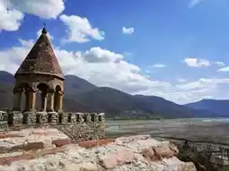 The views of the Zhinvali Reservoir are chef’s kiss. Seriously, that lake is so blue it almost doesn’t look real. I just sat on the wall for a while, soaking it all in. There’s a small market nearby too with snacks and souvenirs if you want a bite or a break.