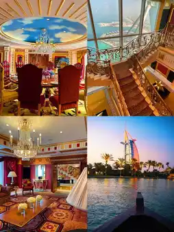 Iconic seven-star hotel, the world’s first "super-luxury hotel," with helicopter transfers and gold interiors.