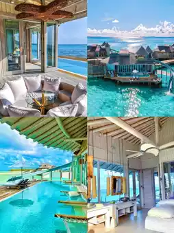 The ultimate island fantasy, overwater villas with direct access to the crystal-clear sea, surrounded by Tiffany blue lagoons.