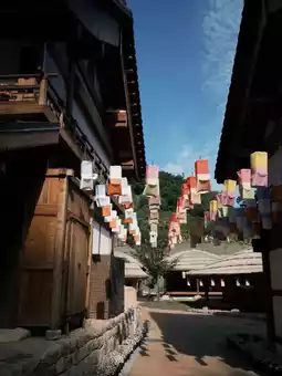 In Hahoe Folk Village, experience the tranquility of traditional Hanok houses,