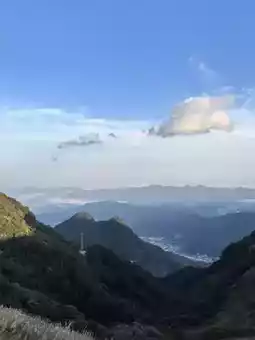 We arrived at Ji'an West Station at 9:00 AM on Saturday (to catch the direct bus in the morning, we arrived in Ganzhou on Friday night). The West Passenger Terminal is on the right after exiting the station. We waited in the waiting room for the bus and bought our bus tickets on the Didi app. Tickets are 9.99 per person if purchased two days in advance, and the same applies to the return trip. We arrived at the Tourist Service Center at 11:40 AM, where there's a restaurant. After lunch, we went to the waiting room to wait for the scenic shuttle bus. Since it was the weekend, the shuttle bus was full and left. We drove for half an hour up the mountain to the trailhead of the Ancient Official Road (if you're taking the cable car, get off at the next stop). We started the climb at 1:20 PM. The area ahead was all forested, so we didn't get sun. We arrived at Guanyin Temple at 2:20 PM. We reached a platform at 3:20 PM. It was less crowded than Golden Summit and perfect for drone flying. I recommend taking lots of photos here (Pictures 1-4). We continued our ascent at 4:30 PM and arrived at Golden Summit at 5:30 PM. It was crowded and foggy. We planned to stay at Guanyindang (mainly because Jinding was crowded, and we wanted to see the scenery from Diaomazhuang to Guanyindang the next day, but we were worried about the long descent from Jinding and missing the 10:30 AM bus, and we were also concerned about tent hygiene). So we took a quick photo at Jinding before heading to Diaomazhuang.
