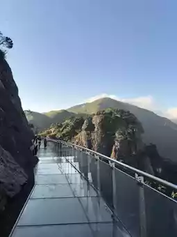 We rested for an hour. We set off for Guanyin Dang at 8:00 PM. The road was flat all the way, but it was a long one. We walked for over an hour, first on a glass plank road, then on a wooden plank road. There were almost no people and no lights along the way. I regretted it immediately, wondering why I had to endure this ordeal. I even considered hiking back the next day to save time, but it was a good thing I didn't, because you can only see the beauty of this section of the road after daybreak. Hahahahaha (Photos 6-10). It's officially the most beautiful section of the scenic area.
