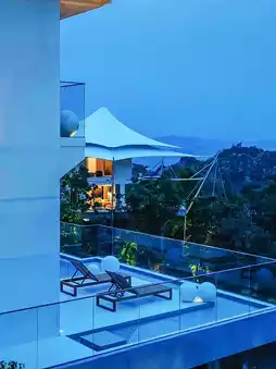 The white luxury villas dotted among them are particularly eye-catching, like sailing sails.