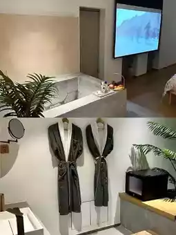 2⃣ Rooms feature large floor-to-ceiling windows with mountain views and are fully equipped with high-quality bedding, smart control systems, large bathtubs, free minibars stocked with Anji White Tea and Lapsang Souchong, welcome fruits, and APPELLES toiletries. The courtyard has an open-air private hot spring bath with disposable bath sets and rose bath bombs.