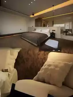 - Common Areas: Fully equipped with an elevator, underfloor heating throughout, and a stunning spiral staircase. A sunken library, multi-function hall, bar, kitchen, and dining room are all available. Guests can also enjoy billiards, board games, or relax by the triangular fireplace. The top floor boasts a panoramic swimming pool, while outdoors you'll find a wading pool and a healing lawn.