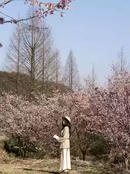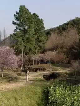 This is a wild cherry blossom secret spot hidden at the foot of the bamboo forest.