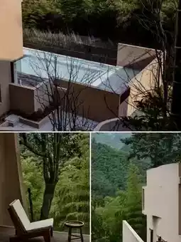 Three rammed-earth-colored buildings, "Xu," "Yi," and "Chi," stand scattered across the hillside. Using wood and stone, they outline the beauty of Eastern wabi-sabi aesthetics. Light and shadow interplay in the corridors, floor-to-ceiling windows frame the bamboo sea and cloud sea into dynamic paintings, and even the stone walls beside the bathtubs retain their original texture, telling the story of the "rebirth of an old house." Designer Zhu Xiaochen once said, "This is not architecture, but an emotional extension of nature."
