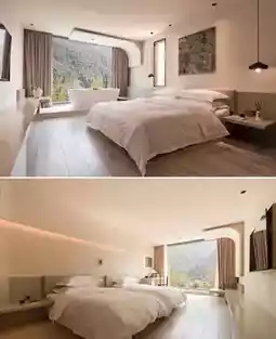 Crafted by the Pany Design team, the hotel embodies the spirit of "Wabi-Sabi aesthetics." The rammed earth-colored exterior walls complement the emerald bamboo, while rough bricks, natural wood, and art collection furniture create a collision of oriental Zen. Three independent buildings, "Xu," "Yi," and "Chi," are scattered across the mountainside, with 270° panoramic floor-to-ceiling windows bringing the light and shadow of the bamboo sea indoors. Wake up to a fairyland shrouded in mist, and in the evening, watch the sunset glow paint the bamboo tips. Every frame is a cinematic masterpiece, reminiscent of "Crouching Tiger, Hidden Dragon."
