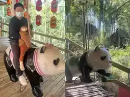 🌟Itinerary: After entering the park, first go to the Petting Zoo. There are many cute little animals inside, such as Chow Chow dogs (they look a lot like little pandas), Shetland ponies, alpacas, pygmy goats, raccoons, Call ducks, sika deer, capybaras, and more. Children can feed and interact with them, it's super fun! Then go to "Panda Mountain." Ride the cute panda-shaped car slowly up the mountain; it's relaxing and fun, and the scenery along the way is also beautiful, especially suitable for lazy travelers! When you reach the top of the mountain, head straight for the Bamboo Drifting. The whole course is about 1.2 kilometers. Drift down the glass walkway with lots of continuous turns, it's super exciting and fun! Children can play with adults, and the park provides free raincoats. After drifting, go and experience the Sky Road Flying Car. The 1314-meter track spirals down the mountain, with 360° extreme bends and a high drop, giving you the feeling of a real-life sunset flying car, super cool! It's recommended to go after 4:30 pm. With the sunset, the atmosphere is amazing! When you're tired, go to the Bamboo Forest Cafe, have a cup of coffee, enjoy some leisure time, and experience the Bali style. Afterward, you can take photos at Panda Village. Surrounded by the Anji bamboo sea, the village has dozens of cute panda installations, also incorporating Bashu culture. Every photo is a masterpiece! Then go and experience the Panda Big Trampoline and Bamboo Forest Crossing, and finally, go to the Bird World to see various birds and learn about ecological knowledge.