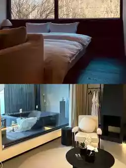 The guesthouse offers only 9 rooms, each named after traditional Eastern colors such as Jiblue, Qingyi, and Lanye, with unique characteristics. Six rooms feature a "one courtyard, one bath, one room, one view" design, complete with private gardens and spacious verandas. The rooms are fully equipped with Karl Lagerfeld fragranced toiletries, TOTO bathroom fixtures, full-floor heating, Marshall speakers, and agee selected snacks. The KING KOIL mattresses ensure a good night's sleep.