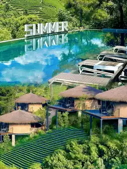 1️⃣ Morning Lesson: Wake up at 5:30 AM in a tent hotel to learn the "one bud, one leaf" picking technique from local tea farmers.