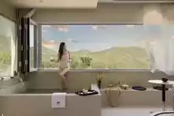 The homestay features 10 uniquely designed rooms. This time, I stayed in the 'Meishi Top Suite,' drawn to its breathtaking window views framing the mountain scenery—lying in bed, you can admire the beauty outside. There’s also a soaking tub for a relaxing bath, making it extra chill~