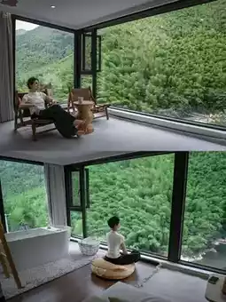 Surrounded by vast mountains and bamboo forests 🌳 View right from the window