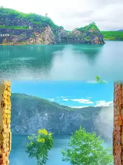 ⛰️First broken window frame on the left at entrance! Framing the Tiffany blue lake + cliff, recommend📖 wide-angle shot, stand inside or silhouette for storytelling.