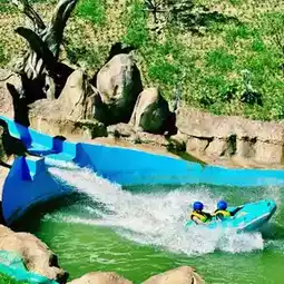 Perfect for families with kids, this area features slides nestled in rocky valleys with jungle-themed decor and adorable animal-shaped water slides—super cute!