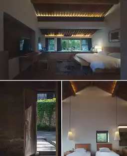 The homestay is transformed from ancient village dwellings, designed by a China Academy of Art architect. The standalone earthen houses follow the mountain's contours, featuring double-eaved roofs and minimalist white walls that blend seamlessly with the bamboo groves and mountain streams. It has won the "Best Hotel Design Award"! A mountain spring flows through the courtyard, and from your window, you can admire sea-like bamboo waves and misty mornings, or stargaze at night—transporting you back to childhood memories of wild mountain days at grandma's house.