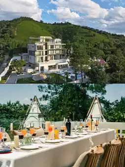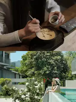 ❸ Cliffside pool villa with mountain-view king beds, nestled quietly mid-slope
