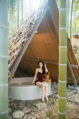 Wooden cabins, hot springs, bamboo sea, and streams