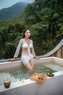 Multiple bamboo-forest hot springs fed by mountain spring water from hundreds of meters underground. Climb further to discover a photogenic Japanese-style tearoom!