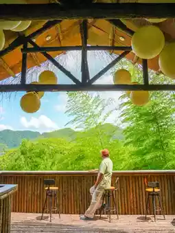 Nestled among misty bamboo forests spanning thousands of acres lies this stunning getaway