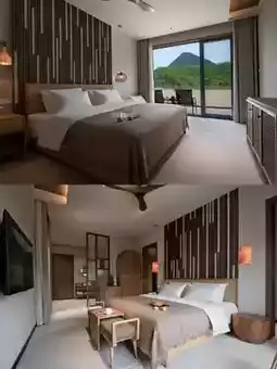 The breathtaking mountain view greets you as soon as you open the door! Featuring a massive infinity pool and floor-to-ceiling windows, every room comes with a private courtyard or terrace. We stayed in the **Qingshan** room, which had its own hot spring bath ♨️—soaking under the stars at night was pure bliss! The butler service was thoughtful, even arranging a birthday surprise for us in advance 🎂.
