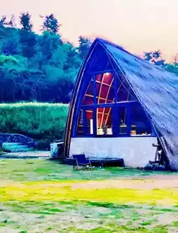 - Camping base transformed from an abandoned mine pit, featuring cliffside movies and light shows at night.