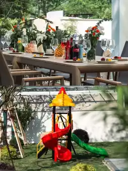 This Landscap Homestay is nestled right next to the Anji Tianmu Mountain Drift Scenic Area. Every room features floor-to-ceiling windows, offering panoramic views of lush greenery from your bed. The best part? The homestay has its own private creek with crystal-clear water, where kids can safely splash around and catch fish 🐠