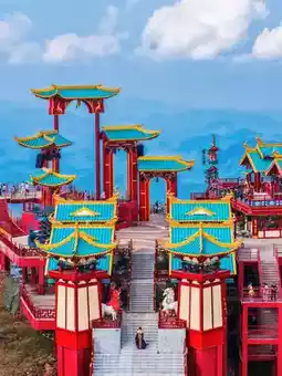 Cable car up the mountain ➡️ East Gate of Xianxia Town ➡️ Boundless Lotus Pool ➡️ Deer Cry Immortal Platform ➡️ Celestial Gate Tower ➡️ Ninefold Heavenly Gate ➡️ Mountain Gate Stairway ➡️ Buddha's Hand Picking Flowers ➡️ Glazed Golden Pavilion ➡️ Dragon Gate ➡️ Sword Flight