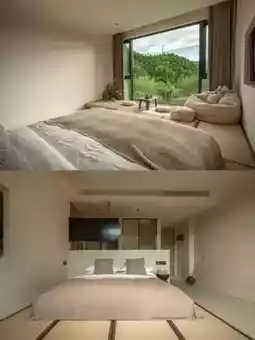🌈Rooms feature Japanese-style design with a strong wabi-sabi vibe😍, large floor-to-ceiling windows with wide views, open the window to see bamboo forests, fully equipped👏
