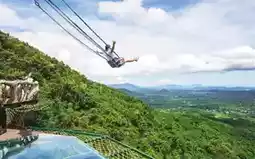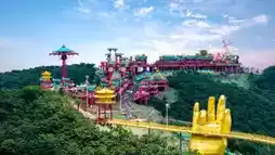 After entering the park in the morning, head straight to Cliff Thrill Park. Challenge the cliff with via ferrata climbing and feel the thrilling excitement of walking in the air; stand on the Sky Steps to touch the clouds, and scream out loud while swinging on the cliff swing at its extreme! In the afternoon, relax on the alpine grassland, ride the rainbow grass slide rushing down the hill, then drive the cloud car to complete drifting around curves. Before evening, climb to the top of Yunshang Fantasy Hero Town, interact with over 80 NPCs to earn silver tickets, and immerse yourself in the fantasy hero quest. Finally, as night falls, the lights of Fantasy Hero Town come on and the starry river shines brilliantly. Watch a spectacular sunset and the phoenix flying into the sky, feeling the magical fantasy hero world that never sleeps under the fiery sky!