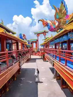 But then I stepped through the clouds and entered the vermilion mountain gate. 🐦🔥 The Monkey King stood at the gate, his staff raised, and Nezha stood on a lotus platform. 🪷 The young man in a robe as white as the moon turned around immediately, and a Taoist priest in a green robe walked across the bridge. Suddenly, I realized this might be a real fairytale world.❗️