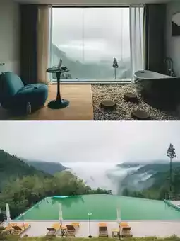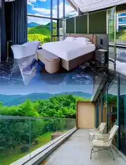 For example, the Qing Miao Twin Room covers 60 square meters with a spacious layout and a large balcony offering a 180° bamboo sea view.