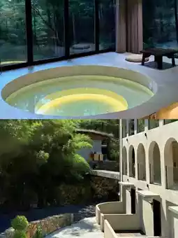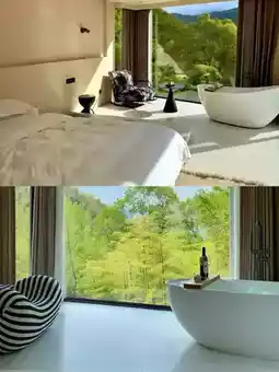 The black-and-white minimalist building looks like a UFO landed in the bamboo sea, where a Japanese dry landscape garden collides with local Anji elements. The best part is encountering Matsuo Basho’s haiku at the corner: "In the bamboo forest, cicadas seep into the stones." Some rooms feature private hot spring pools filled with Anji white tea spring water, where you can see bamboo shadows dancing in the mist while soaking.