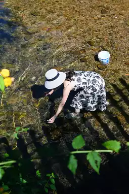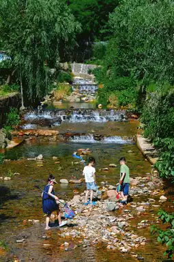 🛖 Right at the guesthouse entrance is a babbling stream. The moment you step into the water, the summer heat disappears💦 Kids can catch little fish and splash around, adults can sit on benches by the stream sipping tea and chatting, with cool water underfoot and crisp cicada chirps in the ears—this is what summer should feel like~