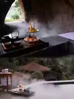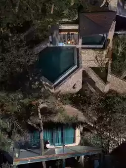 The guesthouse has a full-service restaurant and a Chinese restaurant, an infinity pool halfway up the mountain, a big gourd playground, a children's playground, a Tai Chi arena on the mountaintop, a tea bar, a calligraphy and painting room, Ruoshui Lake with Wupeng boats, fishing experiences, Hanfu dress-up, mountain climbing with bell ringing, and bonfire parties. Due to the large area, the park provides 24-hour shuttle service, and calling for a shuttle is convenient for getting around.