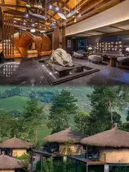 The hotel is located in a 700-acre valley, surrounded by mountains on three sides, with tea gardens, bamboo forests, and lakes. The room types include main building guest rooms as well as standalone thatched-roof villas on the tea mountain, such as the Xiaoyao Residence we stayed in. Many rooms have extra-large floor-to-ceiling windows and viewing terraces, and bathtubs in nine of the room types are placed by the window, offering beautiful mountain and water views when you open the window.