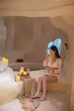 The water surface reflects bamboo shadows, steam gently caresses the face.