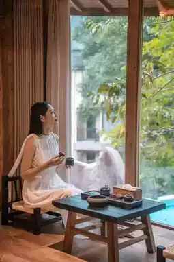 Enjoy tea and scenery by the window; the fresh aroma of Anji white tea makes the afternoon especially pleasant.