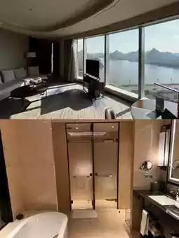 DoubleTree by Hilton Anshun has 300 rooms. The owners are well aware that as a core selling point of a landmark building, almost all of them are equipped with panoramic floor-to-ceiling glass windows, and both the city view and the lake view are unique. For Hilton's high-card members, this hotel is very generous and will basically provide a suite as long as it is available. The hotel has basic facilities such as swimming pool and gym.