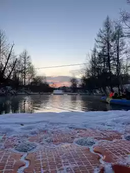 As you drift along the stream, you’ll be surrounded by frost-covered trees and snow-dusted banks. The tranquil waters reflect the pristine winter scenery, creating a stunning mirror-like effect. The crisp air and the occasional sound of ice crackling add to the peaceful atmosphere.